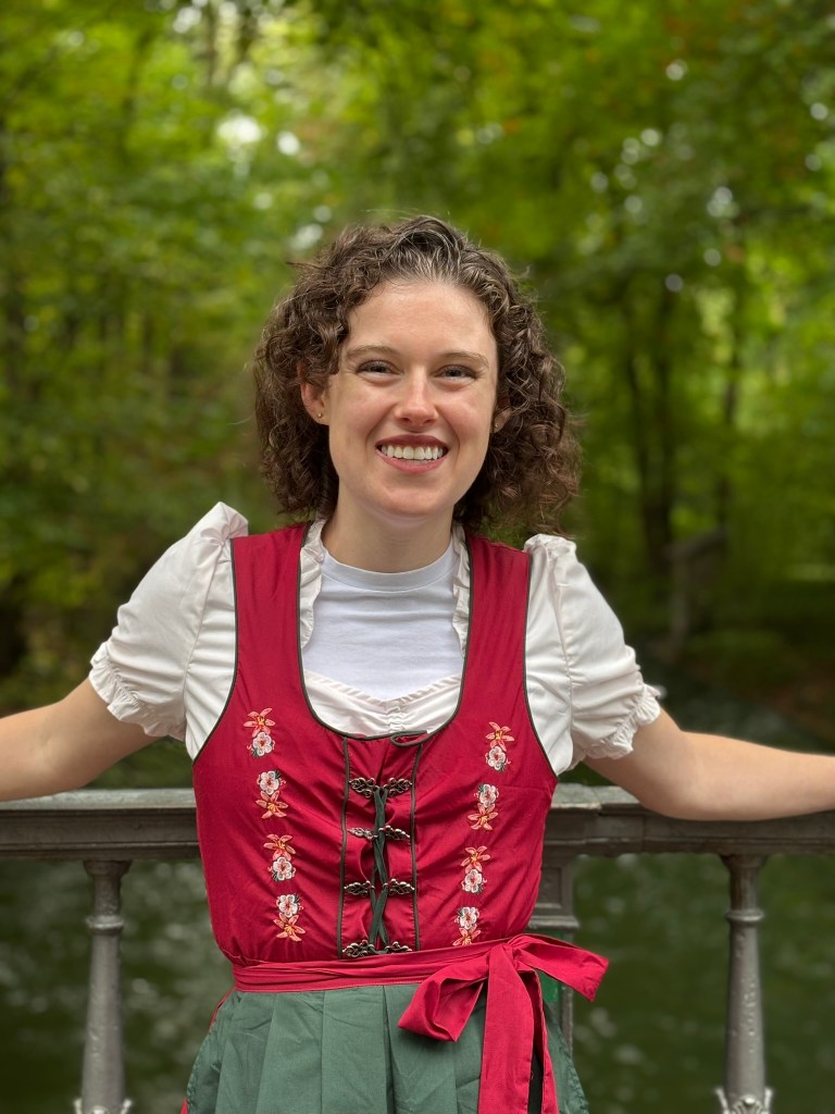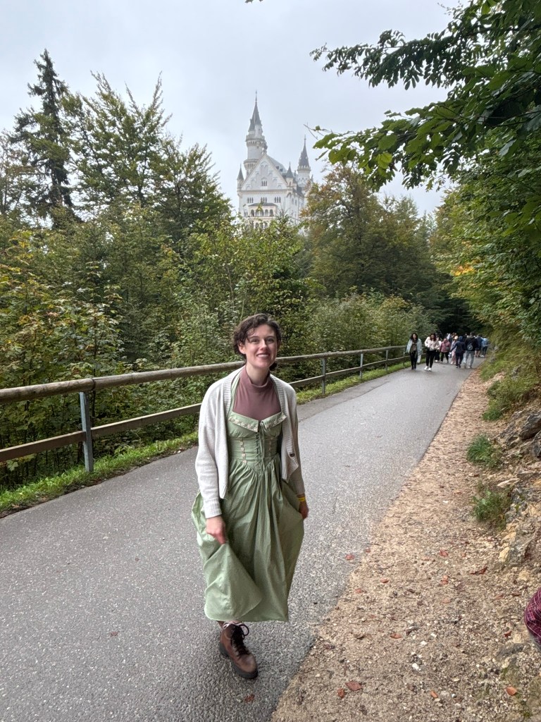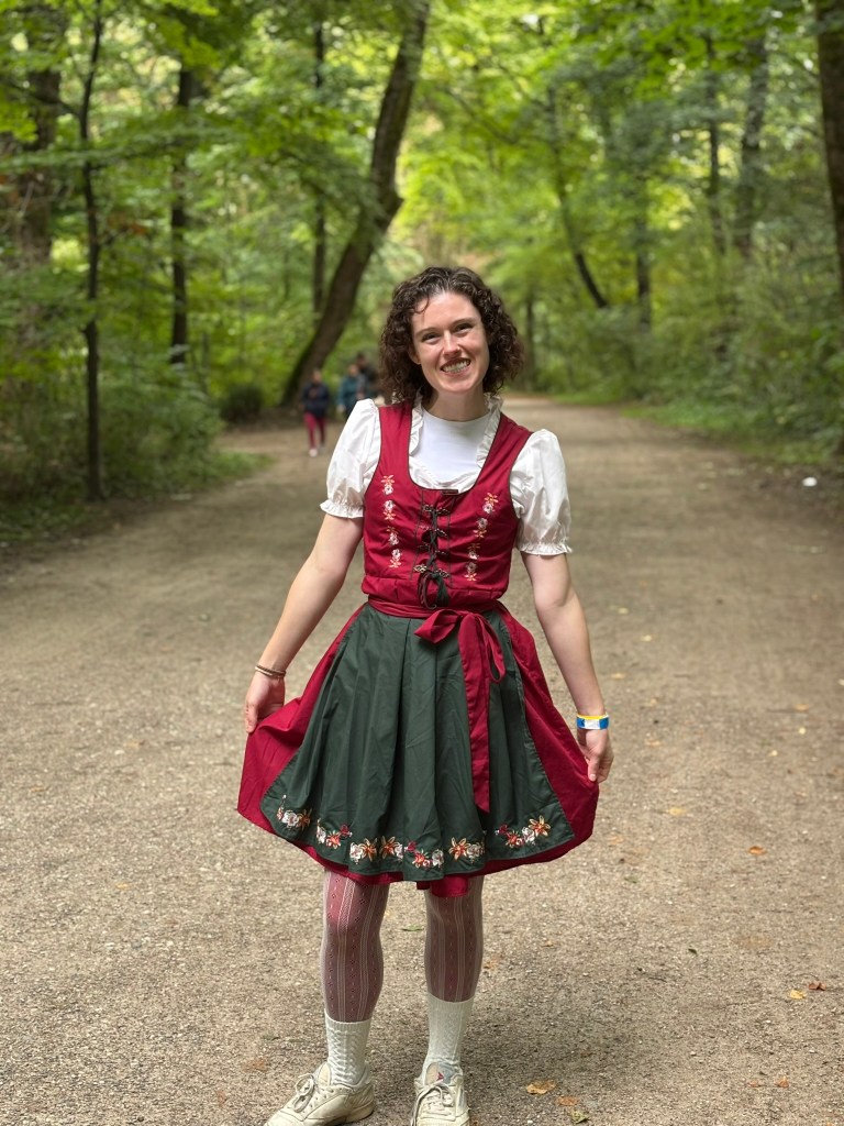 We’d decided to buy dirndls, the traditional German dress for women (consisting of a low-necklined dress, a blouse, and an apron), because it’s a tradition to wear them to Oktoberfest. However, we’ve also got some German heritage on both sides of my family, including Bavarian heritage on my Dad’s side, so it felt fitting. We’ve been talking for years about finding/buying more traditional Irish clothes for my mom to wear to her annual Festival of Cultures. While this isn’t exactly the same, I think all of us were excited to wear some cultural costumes. We had an extra one, so we lent it to Mark’s sister!