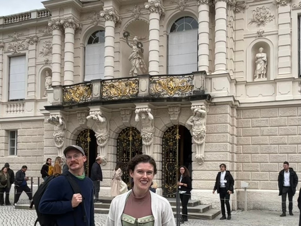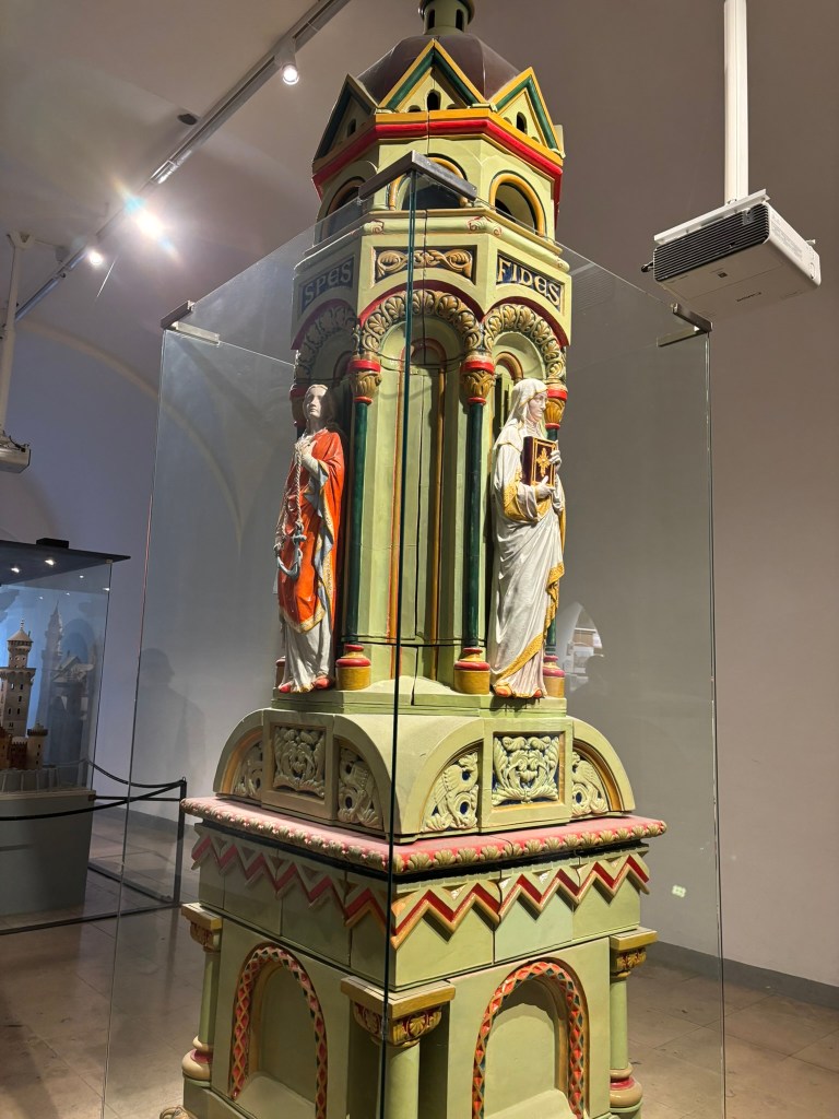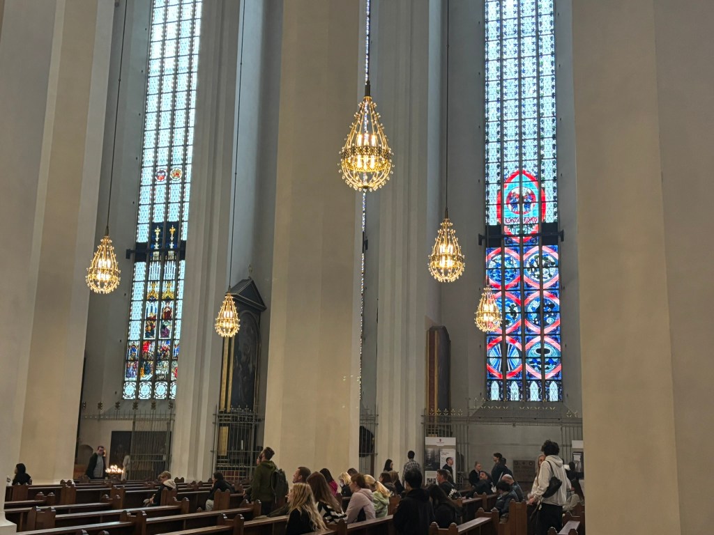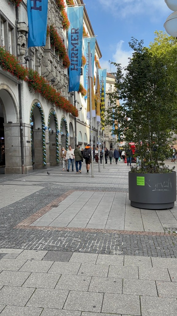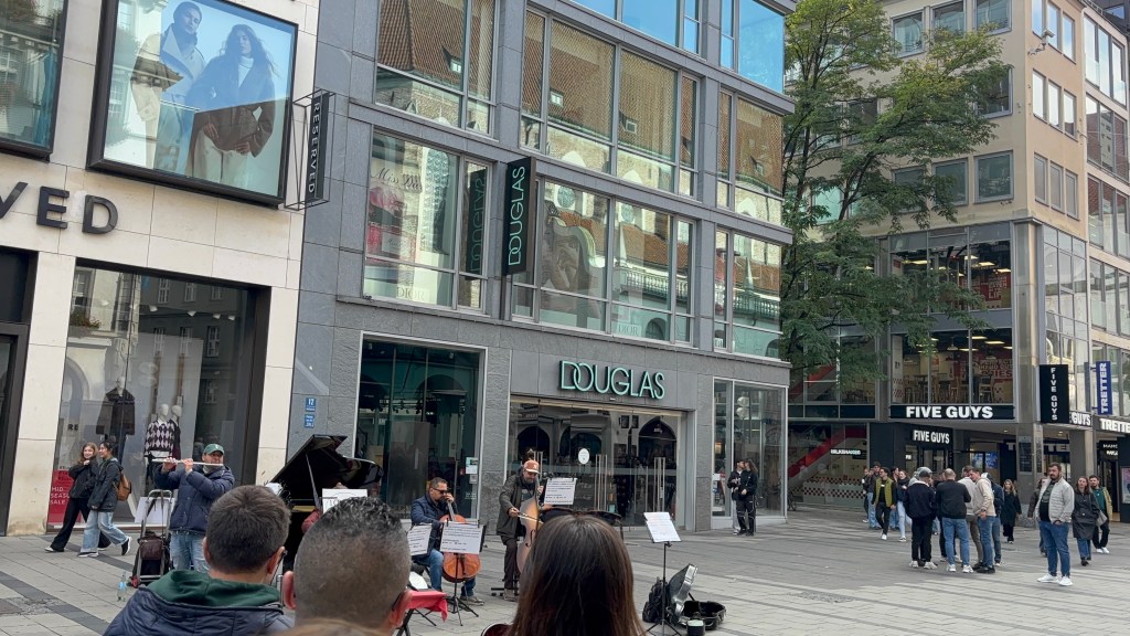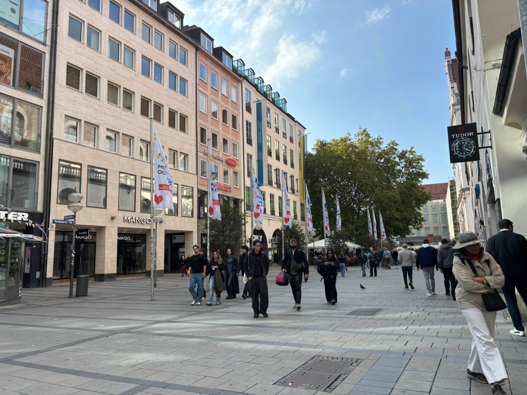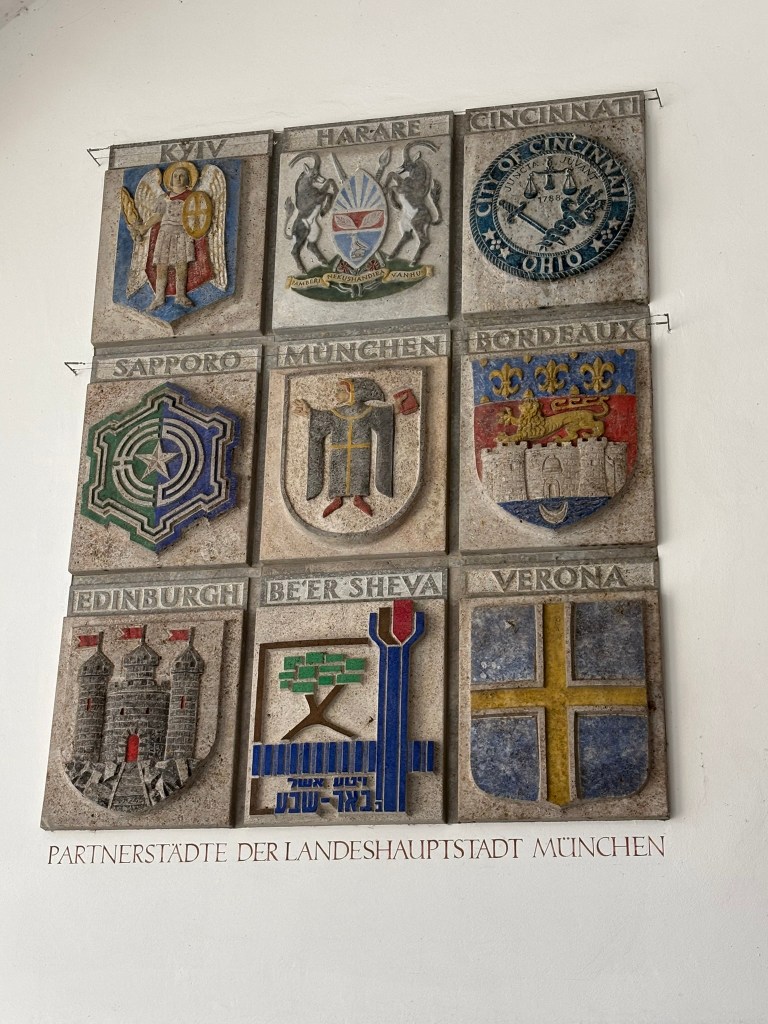 We hadn’t really spent much time in the center of the city, so we took the train and headed closer to where the old town area was. We visited the Munich Cathedral, wandering around inside and heading up for the rooftop views. From there, we wandered back through the streets, listening to street musicians, stepping into another church or two, and finally ending up in Marienplatz, the main town square, for the 5 PM showing of the clock show, which lasted around 10 minutes and showcased life-sized characters enacting scenes from munich’s history.