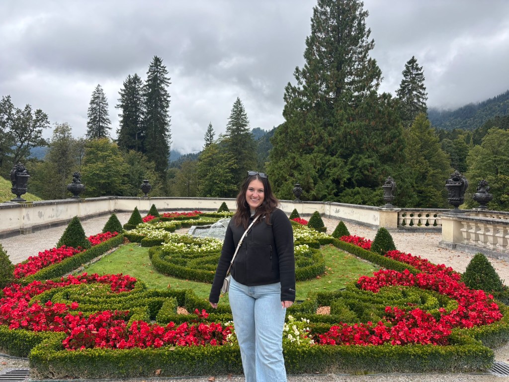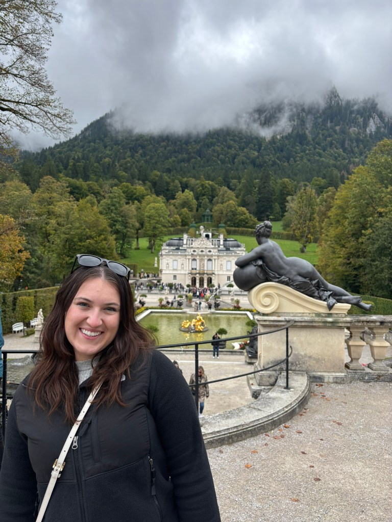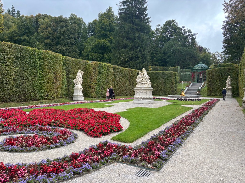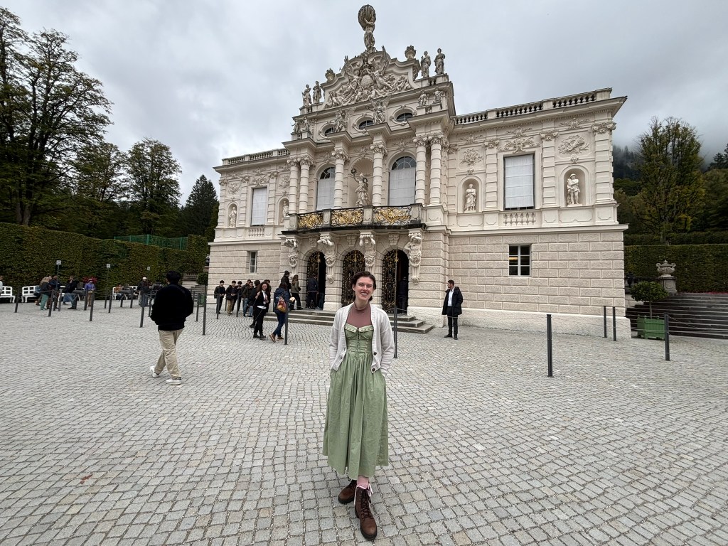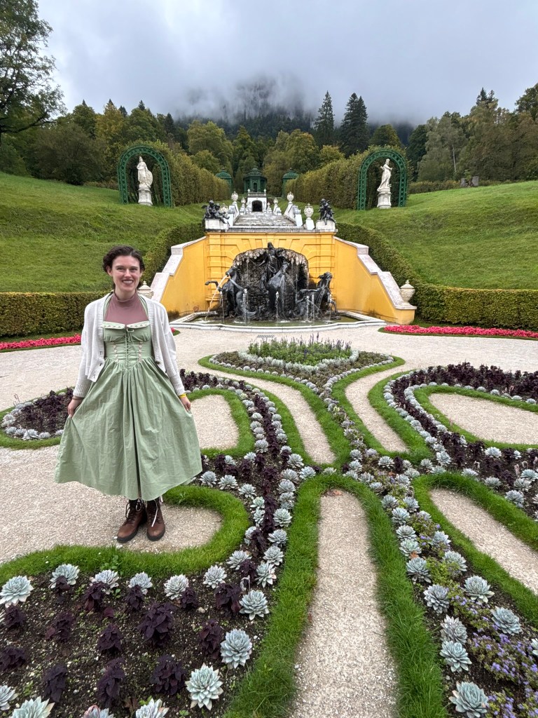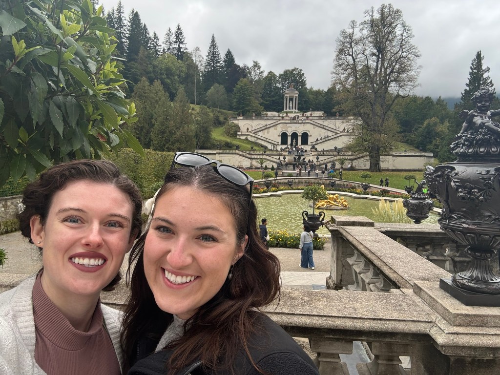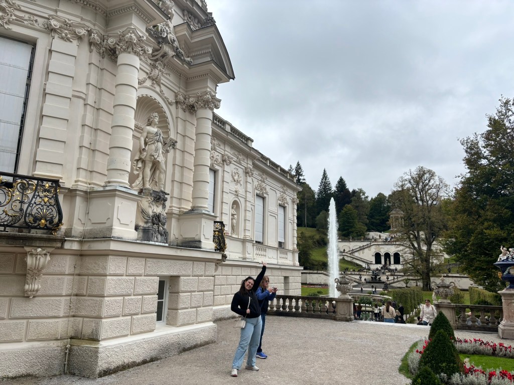 We stopped first at Linderhof, the only one of the castles King Ludwig II saw completed. It was created for just him to live in, and harkened back to the days of King Louis XVI of France, the Sun King, who was his idol. The small palace was designed to reference Versailles in numerous ways. We took a tour inside (there were no pictures allowed inside) and then wandered the grounds before heading back to our bus for the next part of our drive.