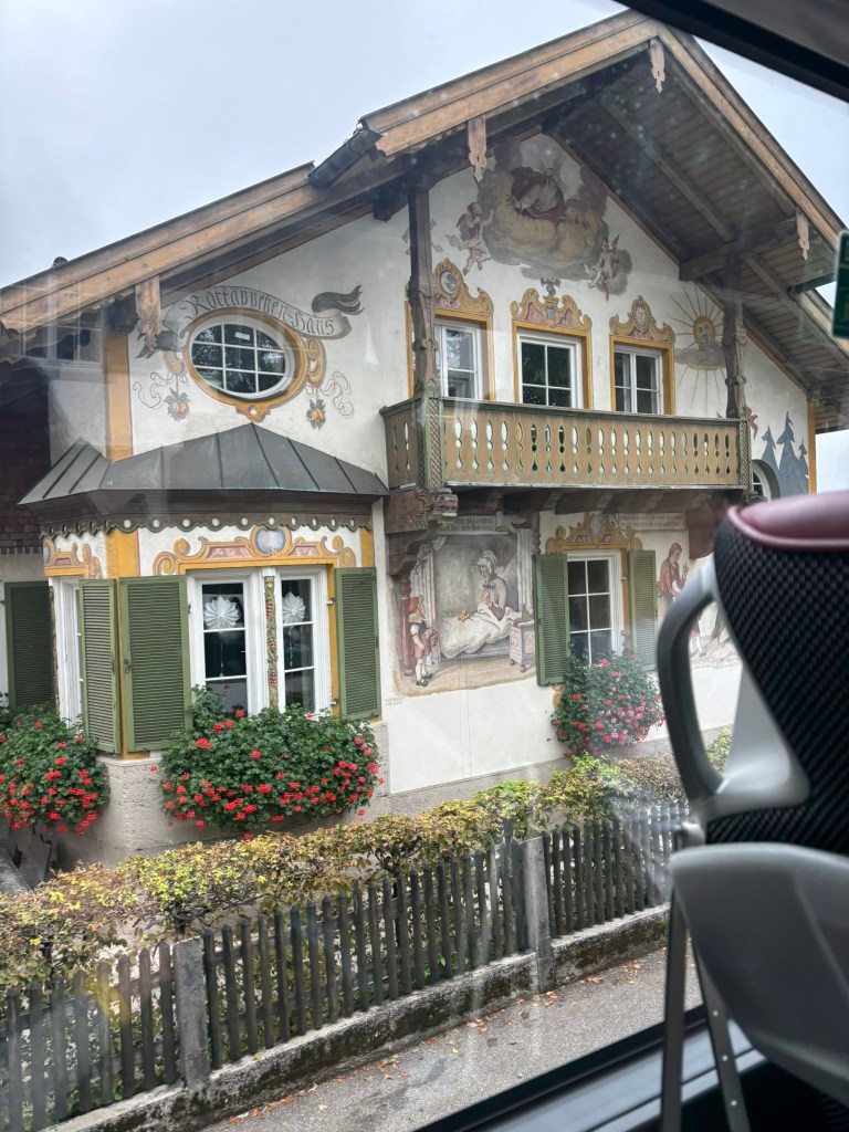 We drove through the city of Ommerammagau, a city between the castles, famous for the paintings on the external walls of the houses. From there, it was not that long of a drive before our ultimate destination.