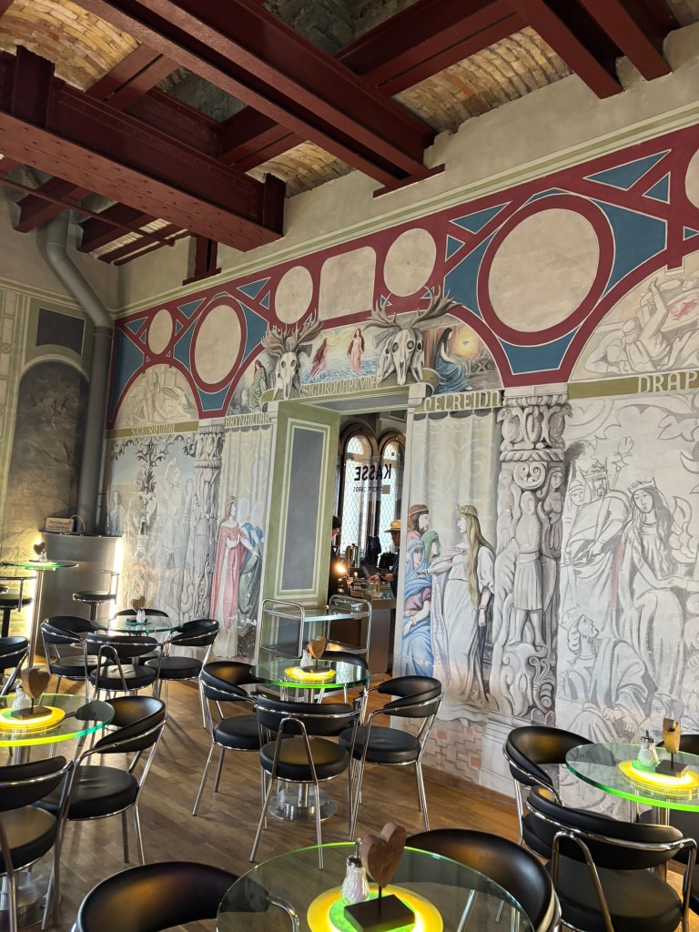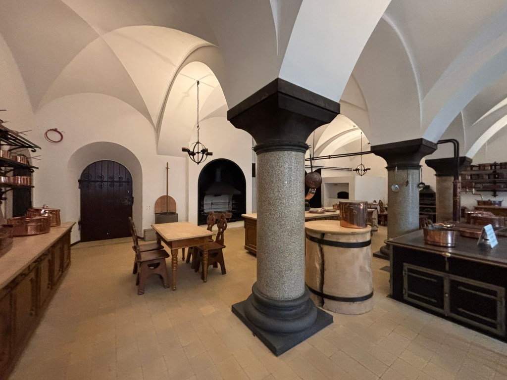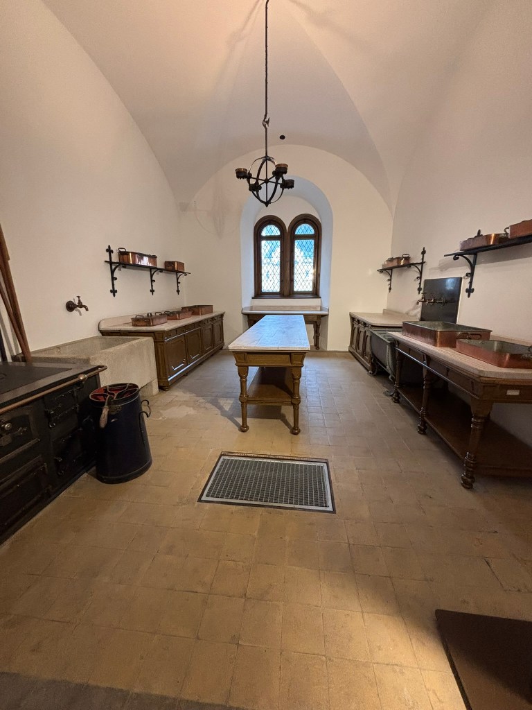 There are no pictures allowed in this castle, either, except for the entry hall, the second floor balcony, and kitchens at the end. Just trust me that it was beautiful. When a neurotic man who has a lot of time and a lot of money decides he’s going to dedicate himself to creating fairytale castles, trust that he’ll come up with the most fantastical plans imaginable and insist that they’re completed to his exact specifications.