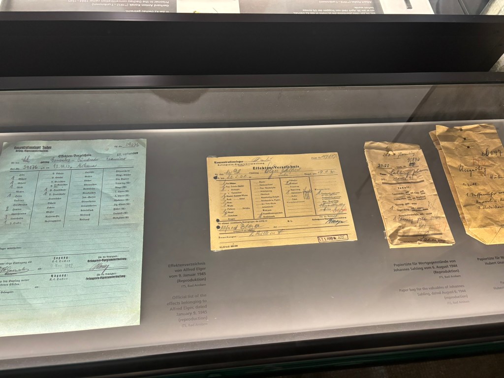 Next, we visited the main administrative building, where the museum portion of the site was held. The building held timelines and artifacts, and I was reminded of a lot of things I already knew, but I also learned some new things, such as the existence of the extension camps scattered around the surrounding areas.