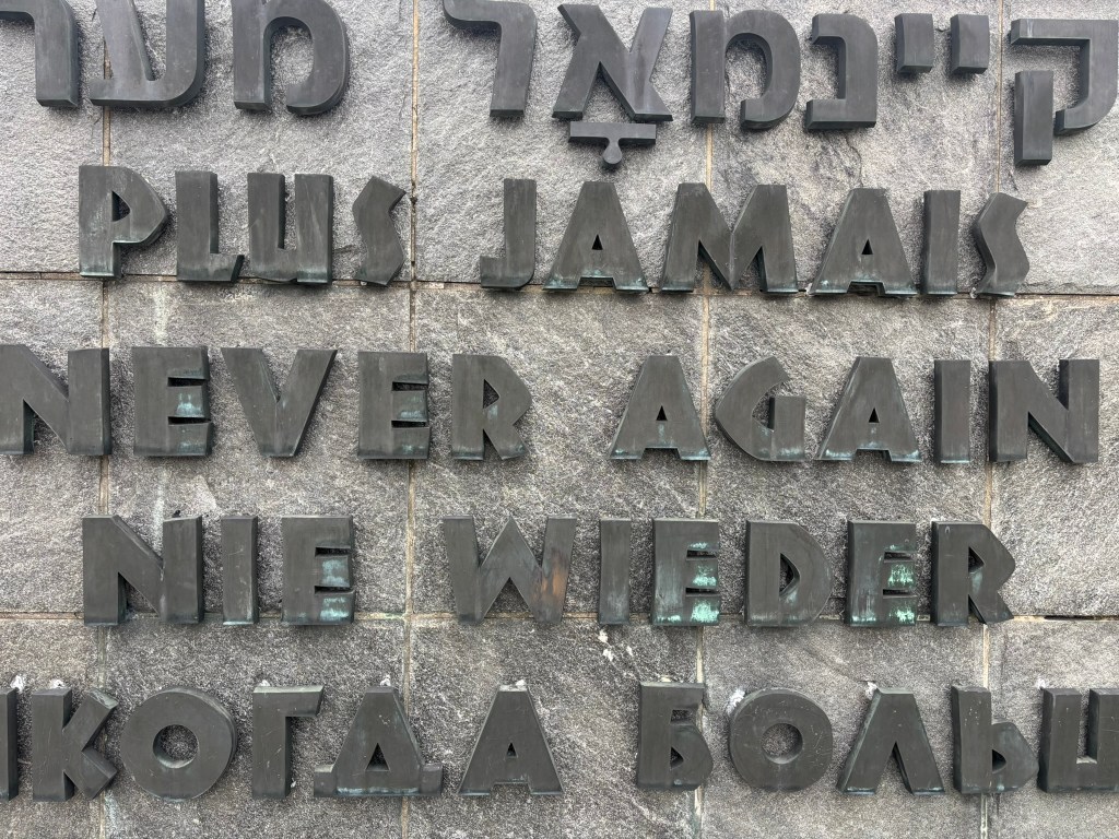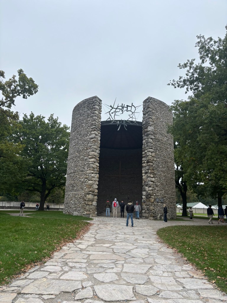 The last major thing we saw was the crematorium. It was set off to the side, and the area surrounding the building itself was littered with memorials acknowledging the spaces where ashes had been dumped. There were memorials for all the religions that had been imprisoned at the camp. There was also a tomb of the unknown prisoner, holding a statue with the inscription “to honor the death, to warn the living” on its pedestal. It was sobering, walking through what looked like regular woods near a house, and seeing signs about this small ditch being used to catch blood or this patch of flowers being where they’d unceremoniously thrown the ashes of thousands of people.