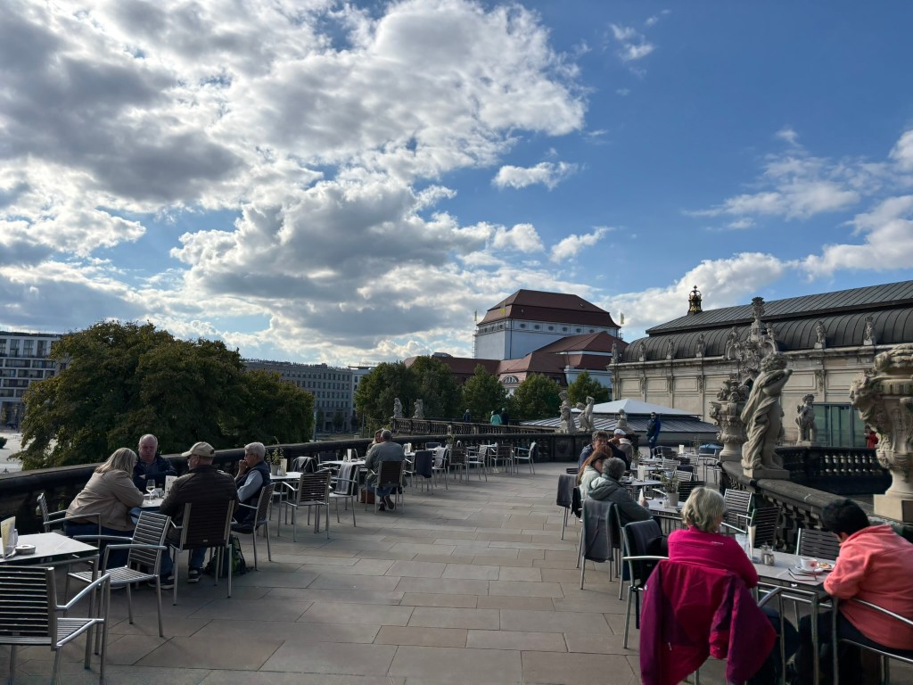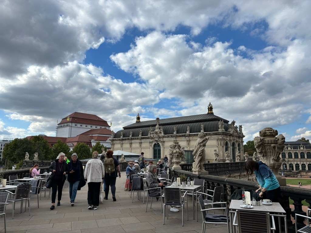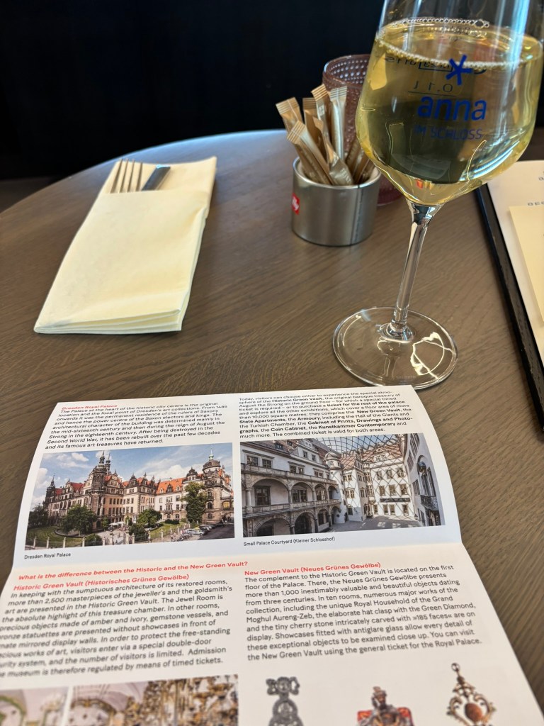After the Historic Green Vault, it was lunch time, so at 1 PM I headed over into the palace’s cafe for lunch. I was excited that they were offering a tarte flambee, a flatbread-type meal that I was introduced to during my two-week trip to Strasbourg in high school. I grabbed a wine with the bacon, cheese, and onion flatbread and enjoyed a meal as I planned out what to do next.