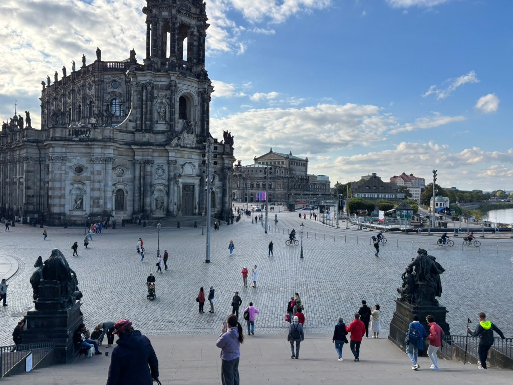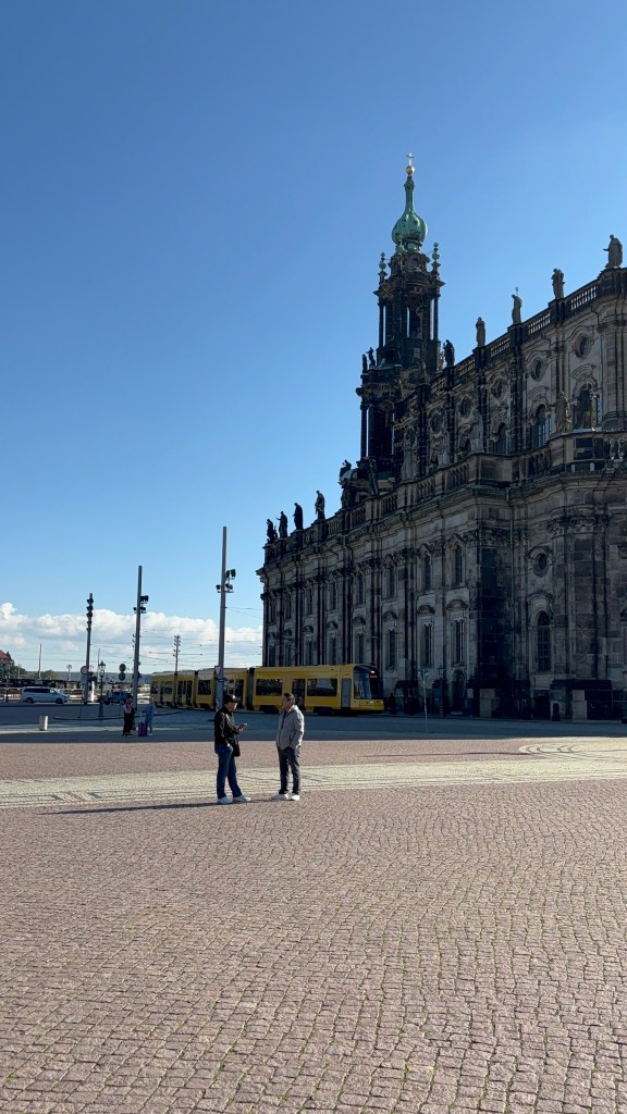 I woke early and left the hostel in Munich, making my way to the airport and catching an early flight to Dresden. It was only an hour-long flight, so I picked up my bags, took the train to the city, navigated on a tram to a main plaza, and walked to drop off my bags at the hotel all before 10 AM. I waited a bit, looking up the top sights in Dresden and trying to recall my friend Mark and his family’s suggestions for the city. At 10, I bought a map from the tourist office that had just opened, then started my tour of the city.