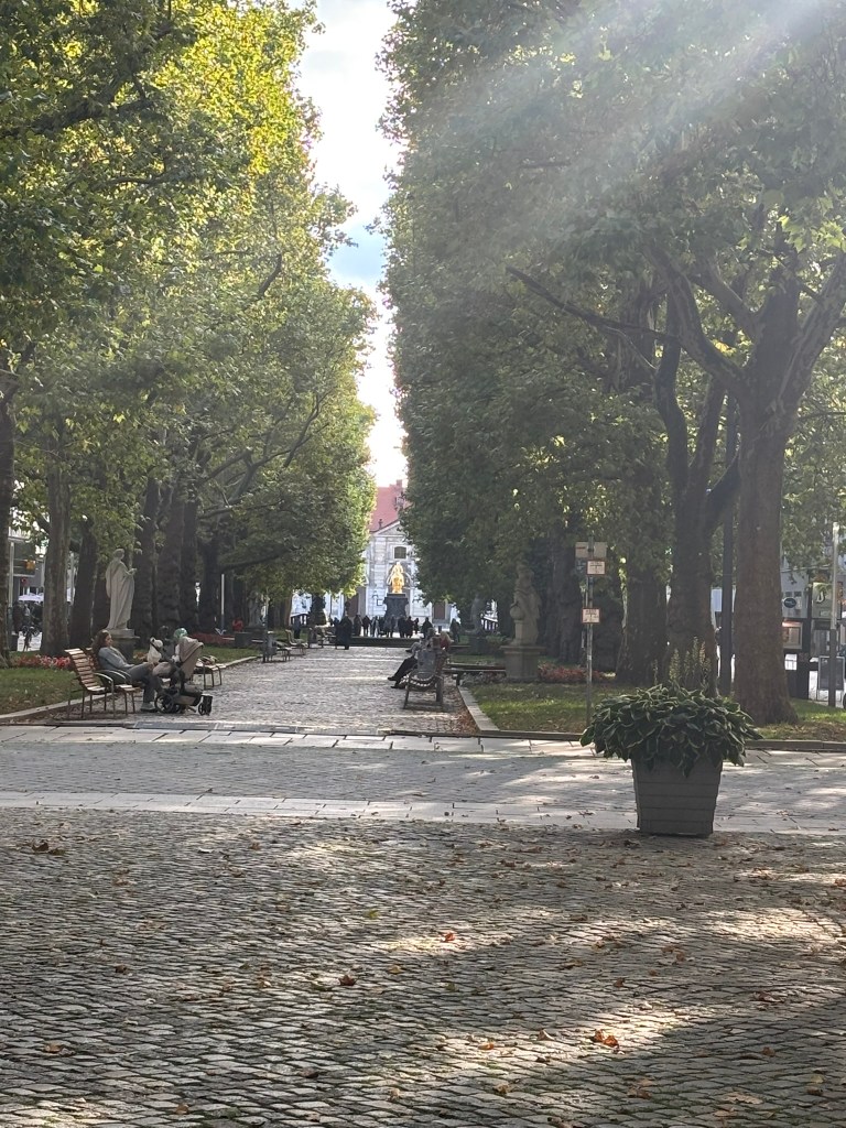I walked along the river, getting to see one of the most famous views of the city. I made way to the Japanese Palace and walked around the exterior. I then walked toward Albertplatz before turning back. I walked down the center sidewalk of the pedestrian boulevard, wandered into a church, and turned back down the street to walk along a bit more of the river before crossing back over the bridge.